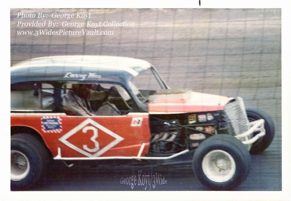 Photo ID # M08.20.16_DI3_VOS_FLM_0875KOYT_1 Car #: #Diamond 3 Driver (s) : Larry Voss Location: Flemington Date: 1975 Photographer: George Koyt Photo provided by: George Koyt Comments: Comment: Photo is dated August of 1975, and if that is the case this car above was probably near the end of it's run as many cars in the modified division by this point were built on pre-fab racing chassis, and shed their coupe or sedan shell in favor of a Gremlin, Pinto or Vega body.