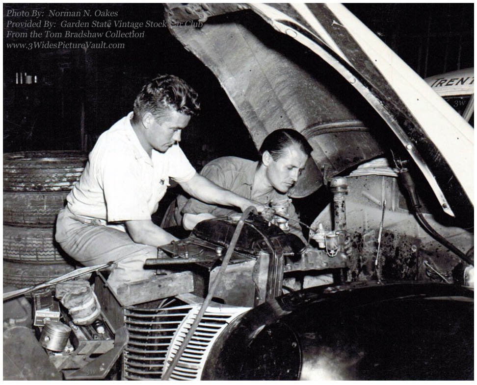 | Comments: | Comment: Pepper Cunningham with car owner and master mechanic Wally Marks. CHeck out the piston, and other parts in front of the grill.... |