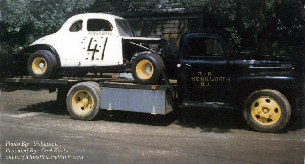 Comments: | Comment from Carl: Here's a picture of my older brother's car on the back of the truck. He was 18 and I was 11. He ran in 1967 at Flemington, East Windsor and at Nazareth. Russ only ran one year before he was drafted. |
