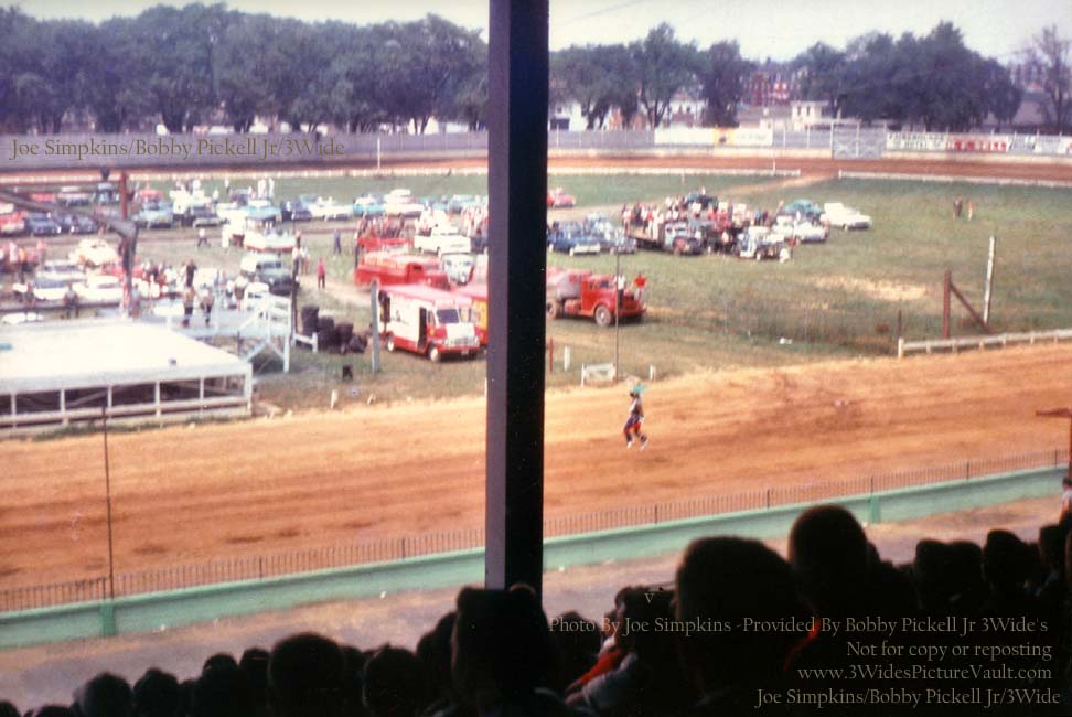 | Comments: | Comment: Great frontstretch photo from Allentown Fairgrounds of Tex Enright jumping up and giving the green... What you don't see is just slightly to the left of frame is a herd of 3000lb+ stockcars, all on the gas... headed his way! |