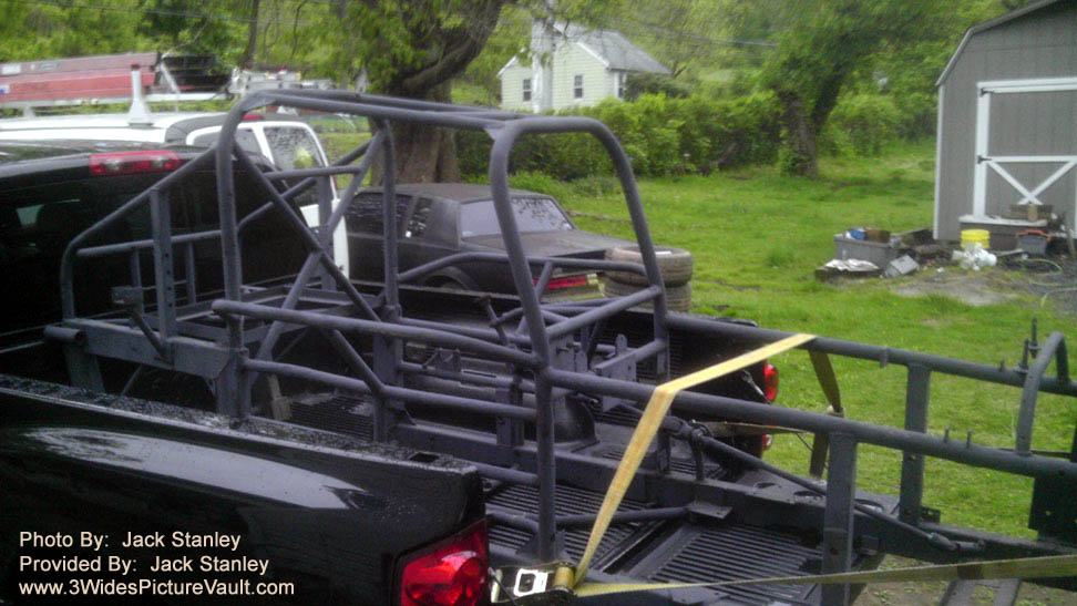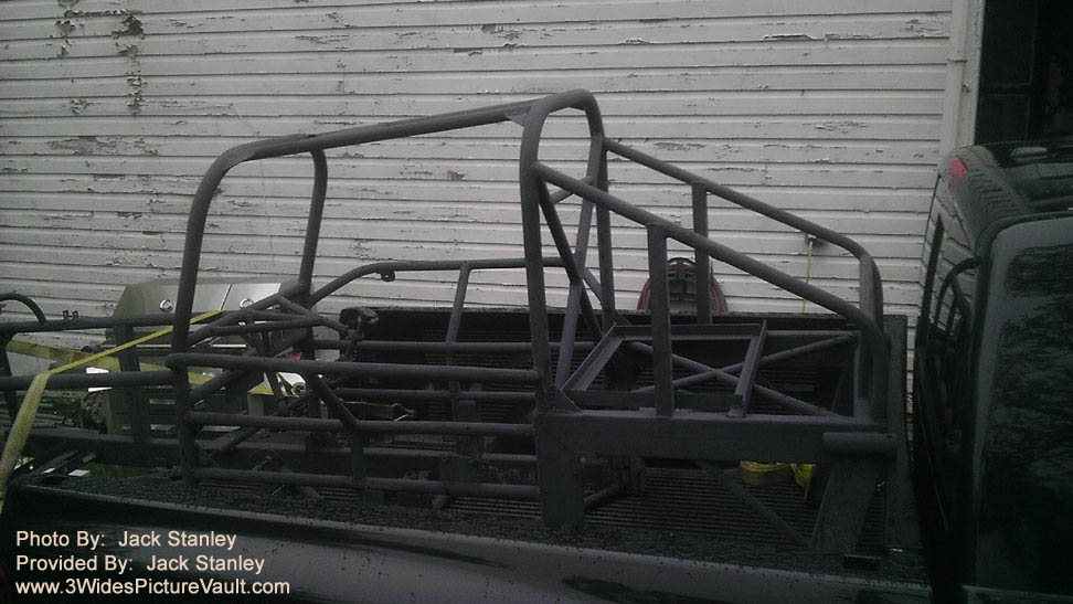 Here's All That's Known:Photo ID# I05.04.12_STA_UNK_QUA_2012JD_5 Car #: Not sure Driver (s) : Not sure Location: Found near Quakertown, PA Date Raced: Late 60's or early 70's? Photographer: Jack Stanley Photo provided by: Jack Stanley Comments: From Jack: I stumbled across this racecar in Quakertown PA, by accident, after I was asked if I knew anybody interested in an old sprint car frame, and back in the woods, here's what I found, and couldn't see it getting cut up for scrap. It's either a dirt car, or possibly a dirt car converted to run pavement, and its stick welded, heavy and built to last years and years lol. The rear rollcage is pretty unique, and that may help identify it.