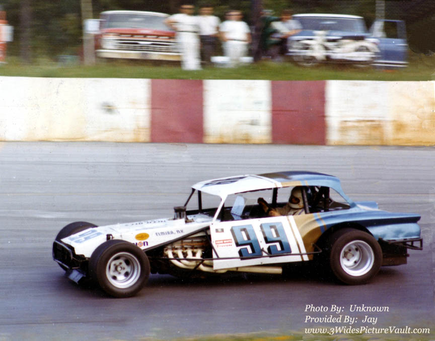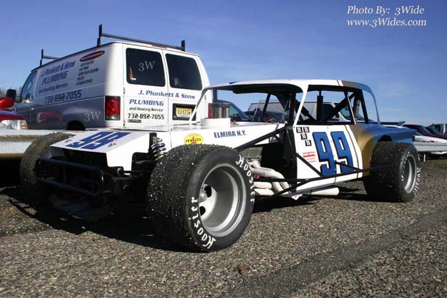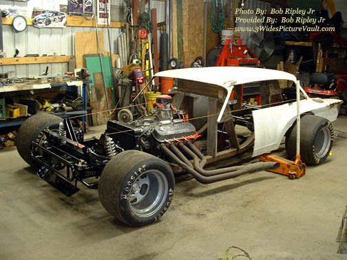 the Vega body. The car was raced at many different tracks with the Vega body in tacked. Later, Geoff went on to drive for the Armstrong team Red #1 Pinto. At that time Geoff gave the car to his long time friend and pit crew member Mike Casterline of Elmira. With the instructions: "That when you are done racing the car, to cut it up!" Geoff did not want to be beaten by his old car at any track as he was out running the circuit. So, The famous # 99 Valiant Modified was cut up by Mikie Casterline himself. If anybody is interested: I'm (with the help from about 1000 people) building a exact replica of the car. It has been a love of mine to attend races at the local tracks since I went to watch my Uncle and Geoff in the early 70"s. I'm into older cars, and thought it would be pretty cool to take a Vintage Modified to the shows. Instead of a restored bright red 1957 Chevy 2 door hardtop. Don't ya think!!!!! I started this project about 3 years ago. Collecting parts as I find them. I bought a Valiant body from a guy in Penn Yann, NY. (GT Performance). Great guy! I bought a scout frame from a guy in Pine City, NY. Another great guy! I bought one of George Kent's old Big Blocks. Another great guy!!. So, Here are a shot of the progress so far. ![]() There has been sightings of what people think might of been the famous # 99 Valiant driven by Geoff Bodine. But I know for a fact, it has been cut up and gone to race car heaven. My Uncle had the only remaining part from the car. It was the wing that they used on the super speedways (bigger tracks). The last time I was at my Uncle's house, he went down to the cellar and brought the wing up, and said "Here, this belongs on your car, nobody will ever see it hanging in my cellar". So, I have the original wing from the trunk lid hanging in my office till I get the car done. I'm shooting for the end of the summer of 2010. If all goes well. (Money?) Thanks for your time! "Rip" (Bob Ripley Jr |
