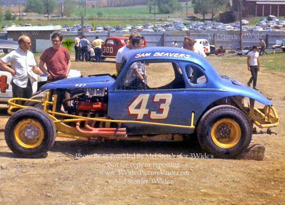Photo ID # Q04.12.20_043_BEA_NAZ_0060MEL_1 Car #: #43 Driver (s) : Sammy Beavers Location: Nazareth Date: 1960s Photographer: Mel Stettler Photo provided by: Mel Stettler Comments: Comment for above photo: As pretty as a painting... It's the Jim Horton owned #43 on the hill at Nazareth.