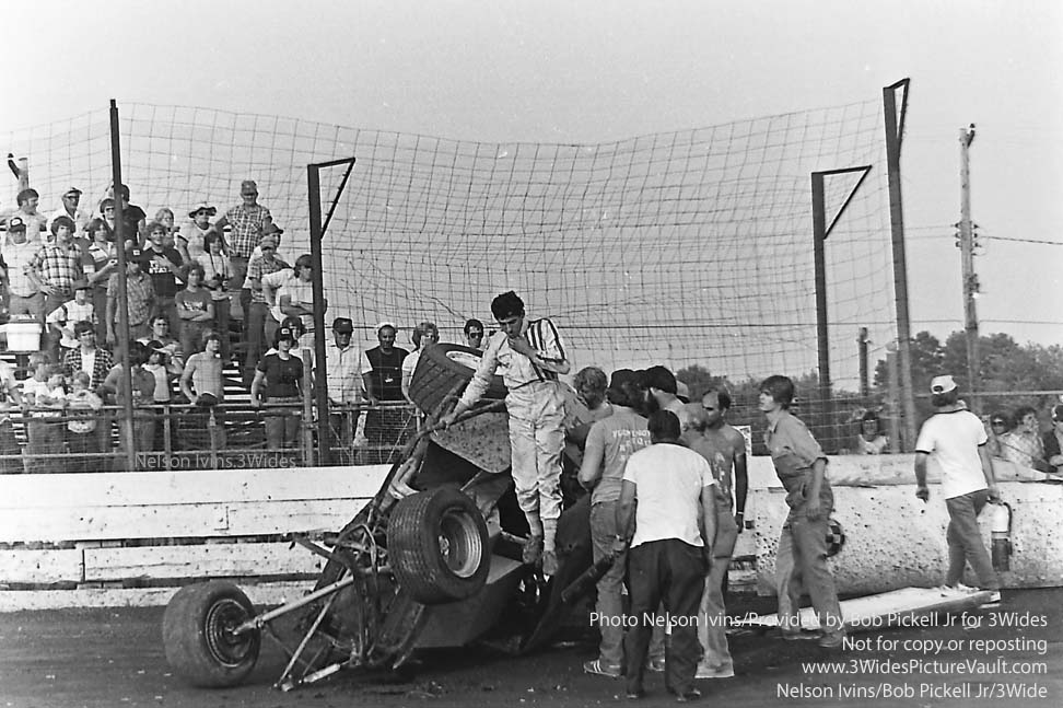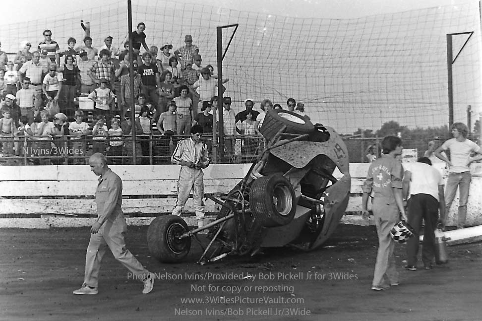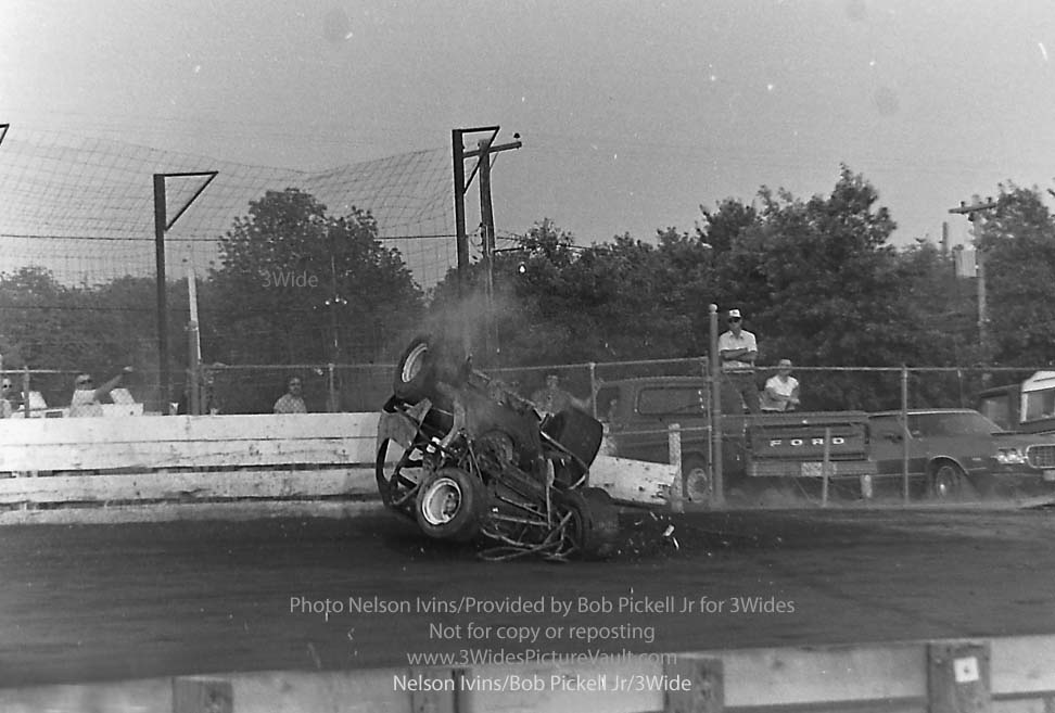 | Comments: | Comment: Flemington favorite Ray Bateman in an early sportsman car, gets into the backstretch cross over gate at Flemington Speedway and then climbs out of the upside down #67 to the cheers of the crowd. |
