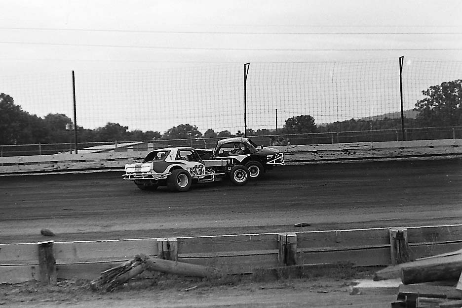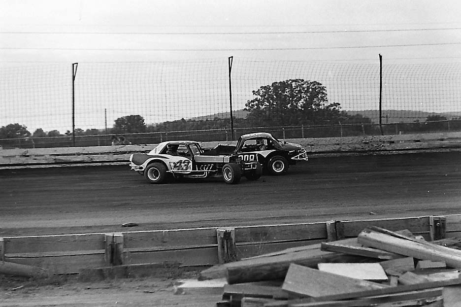 | Comments: | Comment: "Whoa Wilbur....." Looks like Sammy lost the handle between turns 3 & 4 on the Jim Horton Sr owned Mustang, with WIlbur Force looking for a little daylight between Sam and the wooden fence. |