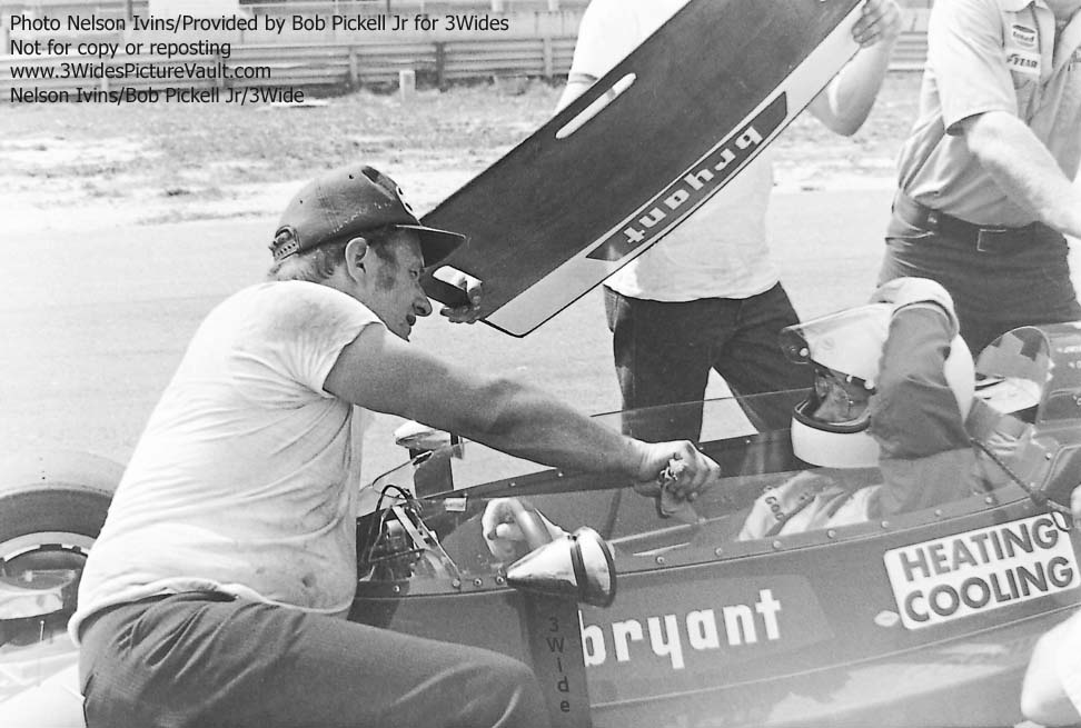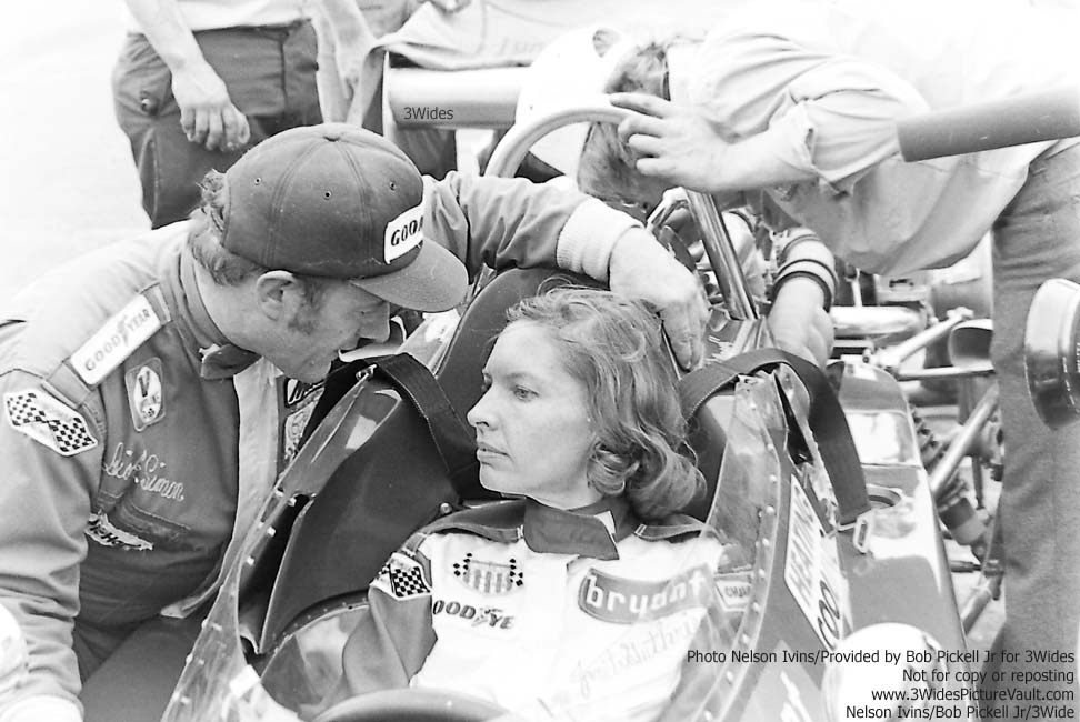 The photos were certainly a nostalgia trip. I checked the text of my book, and the pix were taken on April 16, 1976 (and possibly also on April 17, since we used the track for testing on both of those days). My text, which was based on my journals at the time, doesn’t contain anything about a delay due to a berm, nor do I remember any such thing. On the previous day, April 15, we were at a press conference in Manhattan, which must have been scheduled well in advance. Johnny Rutherford was at Trenton only on the 16th. Thanks again for giving me a look at the photos— Best regards, Janet Guthrie |