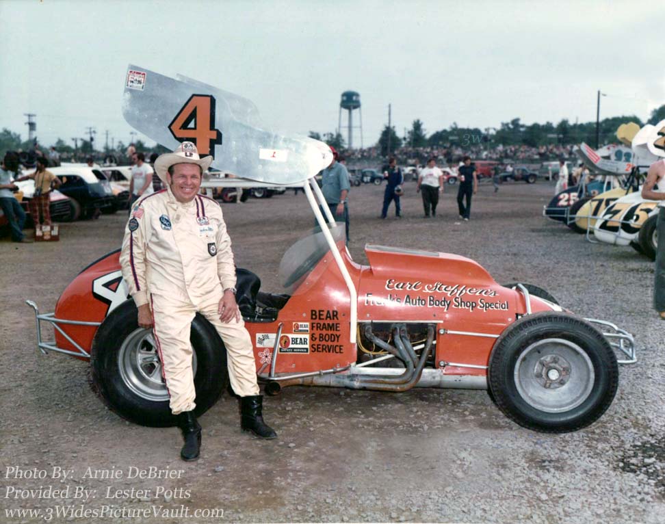 | Comments: | Comment from Lester: Lauden Potts with the Earl Steffens URC sprinter at Flemington with the famous water tour in the background. This car is still around today and looks just like it does in this picture. |