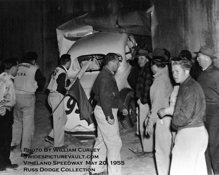 | 06.30.11 | Russ Dodge | You're right about it being the first turn. One way of telling on old Vineland Speedway photos is the "corrugated" fence on the outside of the track to block people from standing in the woods and watching the race. It made them at least have to climb a tree to see! That fence was only located on the end of the speedways first and second turn. |