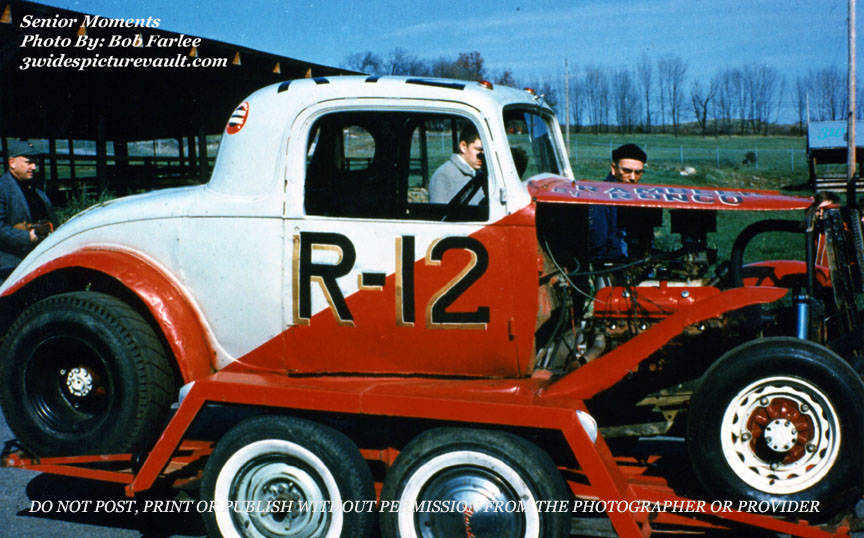 The Real R-12 Stock car owners who fielded cars for many years were always faced with changes and up-grades, if they wanted to stay competitive. Because of this fact, their cars were a progression of change and sophistication. Often their cars were the same color combination and carried the same number, but they were still each uniquely different. This beautiful Bob Farlee photo, taken at Middletown when Otto Harwi was the driver, shows what is the ”REAL” R- 12, to me. Just like the psychologist word association game, have someone give you a car number or driver’s name. Then envision the first car that comes to mind and see your choices! In the Senior Moment I am experiencing, I recall my seeing this car for the first time at Allentown with Toby Tobias driving. I remember the day because Joe Racz, had his usually asphalt prepared 41 there that day, racing on dirt. Not like that has anything to do with the R-12. I recall also seeing Sonny Strupp and George Sleight driving the car at Nazareth. Check out the Nash hubcap on the trailer! Maybe someone will clue us in on the Motor set up or even more verification of my wonderful Senior Moment! Thank goodness I was able to see the real Deasey 707 “Big Donkey” in ’63. How about you? How many of the “real cars” have you seen, or better yet, can still see in your senior moments? Your memories are welcome! Senior Moment by Russ Dodge |