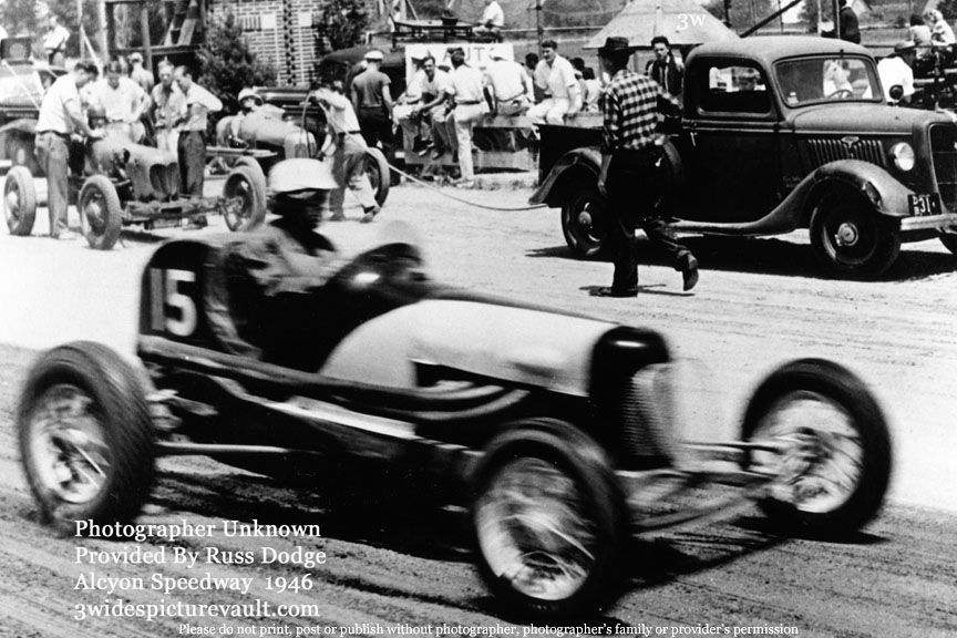 “Big Cars” (sprints) getting ready to race at Alcyon Speedway in Pitman,