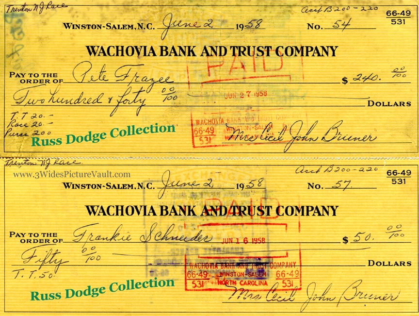 fastest qualifier. The NASCAR payoff was handled by Mrs. Johnny Bruner. She