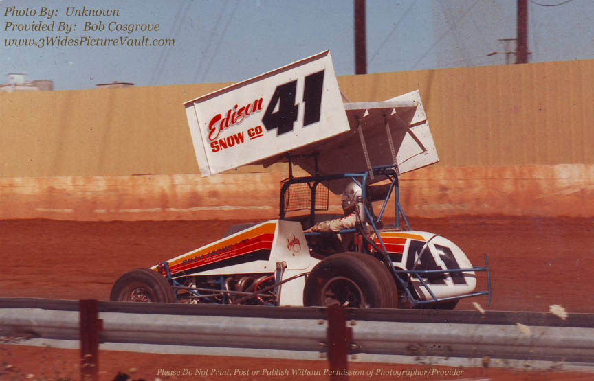 | Comments: | Take a plain white sprint car... hand Cos a paintbrush, and watch how quickly it's no longer a plain white sprint car! Paul Rochelle is behind the wheel in the #41, in a car that might have been owned by former Sportsman racer Gary Kolenz. |